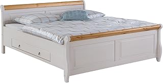 möbelando Bett Massivholzbett Ehebett Einzelbett Doppelbett Jugendbett Silvana II 160 x 200 cm weiß/antik