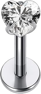 CZ Herzstein intern Gewinde Top 16 Gauge 316L chirurgischer Stahl Madonna Lippe Labret Tragus Bar Piercing