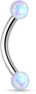Geschwungene Augenbrauen Langhantel 16ga synthetischer Opal intern Gewinde - einzeln