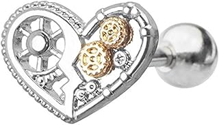 Steampunk Herz Tragus Rook Gauge Barbell – 16 ga-1/10,2 cm 316L chirurgischer Stahl