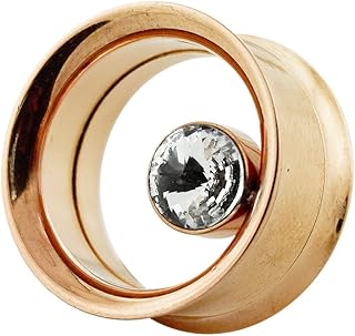 Lünette klar Crystal Stein In Rose Gold 316L chirurgischer Stahl Doppel flammte intern Gewinde Fleisch Tunnel Ohrenpiercing