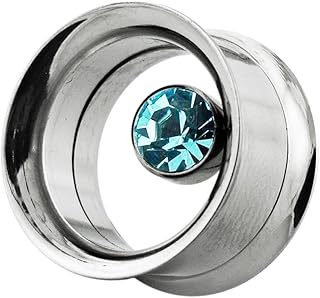 Lünette Set hellblaue Crystal Stein In chirurgischer Stahl 316L Double Flared intern Gewinde Flesh Tunnel Ohrenpiercing