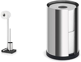 blomus -MENOTO- Stand WC-Garnitur aus poliertem Edelstahl, freistehender Toilettenbutler (64,5 x 15 x 20 cm) & NEXIO- WC-Rollenhalter aus poliertem Edelstahl (22 x 13,5 x 13,5 cm)
