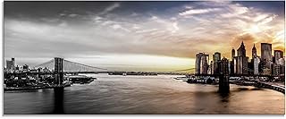 Artland Glasbilder Wandbild Glas Bild einteilig 125x50 cm Querformat Natur USA Amerika New York City Brooklyn Bridge Sonnenuntergang S6FB