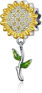 "Sonnenblume" Damen Silber Charm Vergoldet Blumen Bead mit Zirkonia GM40