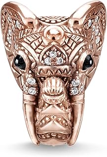 Damen-Bead Roségold Elefantkopf-Perle Silber vergoldet Zirkonia weiß Onyx - K0266-527-40