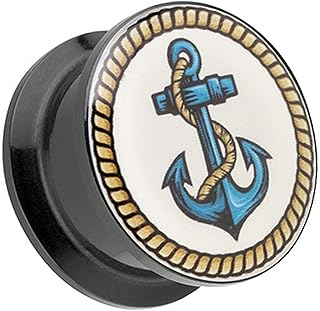 Ohr Plug Flesh Tunnel Piercing Ohrpiercing Kunststoff Schraub Schraubverschluß Picture mit Blauer Anker & Seemanns Seil Motiv