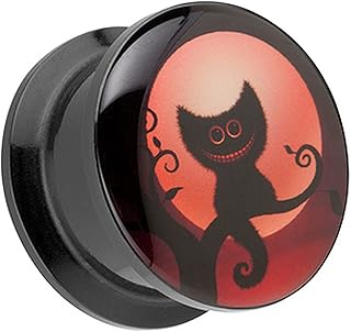 Ohr Plug Flesh Tunnel Piercing Ohrpiercing Kunststoff Schraub Schraubverschluß Picture Motiv mit Halloween Grinsekatze Alice