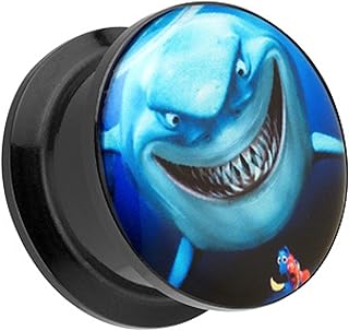 Ohr Plug Flesh Tunnel Piercing Ohrpiercing Kunststoff Schraub Schraubverschluß Picture mit Comic Shark Hai & Nemo Motiv