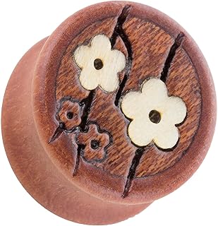 Ohr Plug Flesh Tunnel Piercing Ohrpiercing Holz Braun mit Kirschblüten