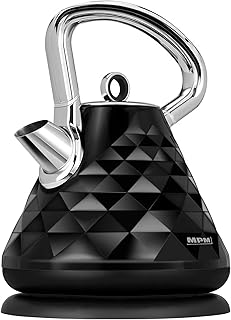 MPM MCZ-98 Drahtloser elektrischer Wasserkocher, modernes Design, 1,7 Liter, Anti-Kalk-Filter, Edelstahl, 360º-Basis, Trockenkochschutz, 3000 W, schwarz