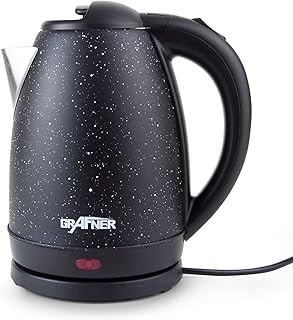 Grafner Design Edelstahl Wasserkocher 1,7 Liter, Edelstahl-Heizelement, 2200 Watt, Trockenlaufschutz, BPA-frei, 360° Basis, gesprenkelt gepunktet (schwarz)