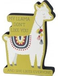 PBK Lustiges Lama Dekoschild aus Holz mit Aufschrift "My Llama Don't Like You and she Likes Everyone", Llama Lovers Home Decor, Neuheit