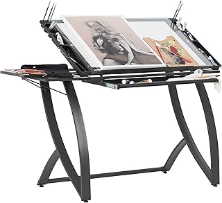 Studio Designs Triflex Zeichentisch, Metall, Anthrazit/Schwarz/Klarglas, 104 x 74 x 79 cm