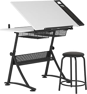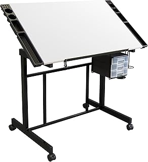 Studio Designs Deluxe Craft Station, Oben Verstellbarer Zeichentisch mit Schubladen, 91,4 cm B x 61 cm D, schwarz/weiß
