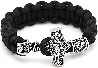 Paracord-Armband mit Verschluss-Element in Form von Thors Hammer Mjöllnir und Valknut-Perle, Edelstahl, 100 % Handarbeit, 19 cm breit