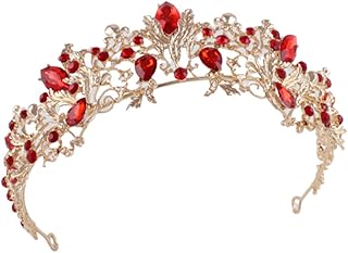 Lurrose Barock Krone Vintage Strass Braut Krone Retro Kristall Stirnband Haarschmuck Dekor für Frauen Damen Braut Prinzessin Geburtstag Hochzeit Party (rot und golden)
