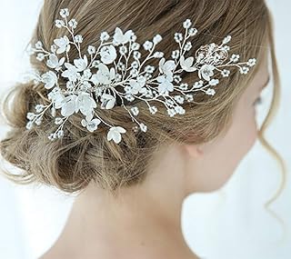 FXmimior Brautschmuck Hochzeit Zarte Blumen Kopfschmuck Haarkamm Vintage Haarkamm Kristalle Kristall Haarkamm Diadem Prom Haarkamm Hochzeit Party Abend Haarschmuck für Frauen und Braut (Silber)