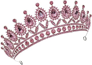 Beaupretty Rosa Strass Krone für Frauen Kristall Braut Tiara Königin Krone Haar Zubehör für Hochzeit Leistung Prom Party