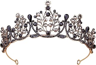 Barock-Krone, Vintage, rund, Retro, Gothic, Strass, schwarze Königin Krone für Hochzeit, Festival, Party, Haarschmuck für Frauen und Erwachsene