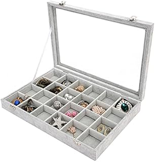 Schmuckkästen mit Glasdeckel, 9 Gitter Schmuckaufbewahrung Schmuckkoffer Damen Schmuckbox Reise, Beflockung Halskette Ohrringe Ring Schmuckschatulle, Transparente Aufbewahrungsbox für Schmuck, Grau