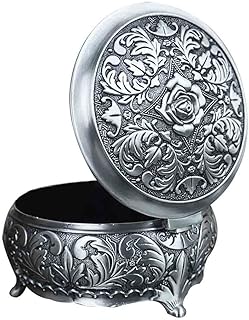 Elegant Rose Gravur Damen Metalllegierung Rund Schmuckschatulle Schmuckkasten Schmuckkoffer Schmuckkästchen Schmuckbox