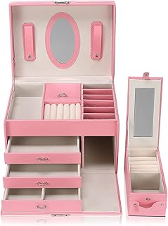 Makika Schmuckaufbewahrung Schmuckkästchen Schmuckkoffer Schmuckschatulle Schmuckbox Schmuckkasten Uhrenkoffer mit Spiegel Schubläden extra Schmuckbox abschließbar - in Rosa