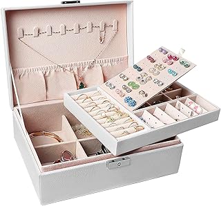 Dapzon Schmuckkästchen Damen, PU Leder Schmuckkasten Schmuckaufbewahrung Reise Samtfutter Schmuckbox, Schmuckkoffer für Ringe, Ohrringe,Halskette, Weiß