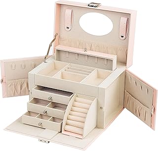 Schmuckkästchen damen Reise Schmuckbox Leder Schmuckkoffer Schmuckaufbewahrung Klein für Ringe Ohrringe Halskette Jewelry Box für Damen und Mädchen