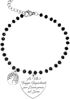 ❤️ Damen Armband aus Stahl mit schwarzen Kristallen, Emotional - Frasen, Mitbringsel, Mitbringsel, Worte mit Charms - Anhänger - Größe verstellbar - Gravur - Silber
