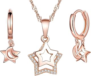 925 Sterling Silber Damen Halskette Creolen Ohrringe mit Anhänger Stern Mond Zirkonia Schmuck Set Roségold für Frauen Mädchen
