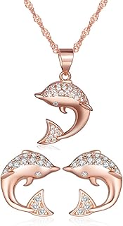 Roségold 925 Sterling Silber Zirkonia Delfin Ohrstecker Halskette Schmuck Set Ohrringe Kette mit Anhänger Set für Damen Mädchen