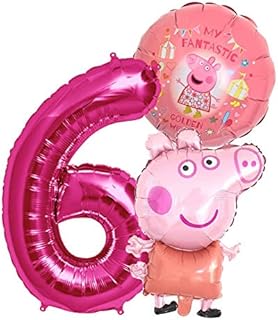 Peppa Wutz Girls Set Folienballon + Riesenzahl 1-8 Zahl 6 Kindergeburtstag Geburtstag Peppa Pepa Pig Schwein Charakter Folien Ballon Kinderparty Ballone Kinder Party (Zahl 6)