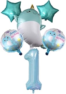 DIWULI, großes Wal Luftballon Set, XXL Zahl 1 Zahlen-Ballon blau, Folien-Ballon, Stern-Ballon 1. Kinder-Geburtstag Junge Mädchen, Dekoration, Ballon-Set Deko, Meer, Meerestier, Tier-Ballon, Tier-Party