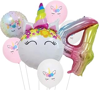 DIWULI, Einhorn Ballon-Set 4 Jahre, Einhorn Luftballon, XL Zahlen-Ballon, Zahl 4, Einhorn-Ballon 4. Kinder-Geburtstag Mädchen, Party, Dekoration, Folien-Ballon, Folien-Luftballon, Zahlenluftballon