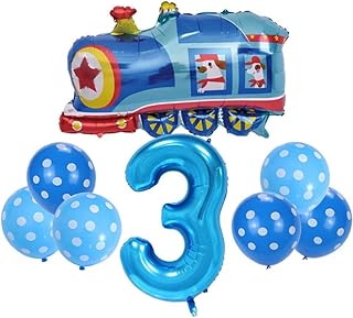 DIWULI, Zug Lokomotive Luftballon Set, XXL Zahl 3 Zahlen-Ballon blau, 3. Kinder-Geburtstag Junge, Motto-Party, Dekoration, Folien-Luftballon, Folien-Ballon, Latex-Ballon, Jahre Nr Nummer, Ballon-Set