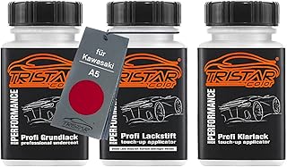 TRISTARcolor Motorradlack Lackstift Set für Kawasaki A5 Candy Persimmon Red Grundlack Basislack Klarlack je 50ml