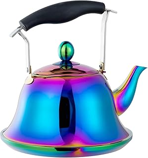 AMOMGard Teekanne mit abnehmbare Siebeinsatz Edelstahl Teebereiter Teekessel Tee Sieb für Loseblatt-Tee Kaffeekannen, Induktion Gas Herd, Regenbogen 2 L