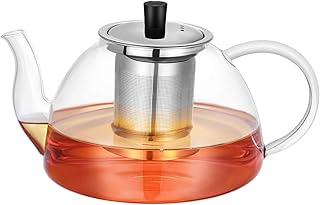 HEMOTON 1200ml Teekanne Glas mit Abnehmbare 304 Edelstahl Sieb, Dickes Glas Teekessel Aufheizen auf dem Herd für Losen Tee und Teebeutel