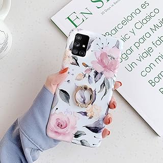 Uposao Kompatibel mit Samsung Galaxy A71 Hülle mit 360 Grad Ring Ständer Blumen Blätter Muster Silikon Ultra Dünn TPU Bumper Case Kratzfest Durchsichtige Schutzhülle Case,Pink Blume