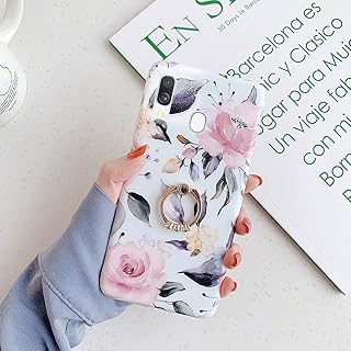Uposao Kompatibel mit Samsung Galaxy A40 Hülle mit 360 Grad Ring Ständer Blumen Blätter Muster Silikon Ultra Dünn TPU Bumper Case Kratzfest Durchsichtige Schutzhülle Case,Pink Blume
