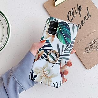 Uposao Kompatibel mit Samsung Galaxy A71 Hülle Silikon Ultra Dünn Handyhülle mit Ringhalter Ständer Bunt Blumen Blätter Muster Schutzhülle Weiche Silikonhülle Crystal Clear Case,Weiß
