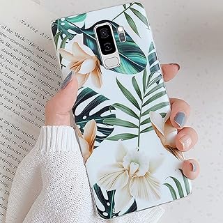 Herbests Kompatibel mit Samsung Galaxy S9 Plus Hülle Silikon TPU Handyhülle Mode Blätter Blume Muster TPU Silikon Case Cover Tasche Schutzhülle Soft Ultra Dünn Stoßfest Hülle,Weiß Blumen