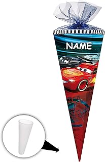 alles-meine.de GmbH Schultüte - Disney Cars / Lightning McQueen - Auto - 70 cm - rund - incl. Name - Filzabschluß - Zuckertüte - mit / ohne Kunststoff Spitze - Nestler - Jung..
