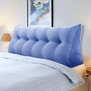 VERCART Multifunktional Bett Kopfteil Gepolstert, Dekorativ Kopfteil für Bett, Ergonomie Rückenlehne Wandkissen, Tragbar Kopfstütze Wandschutz Bett, mit Abnehmbarem Bezug Kordsamt Jean Blau 180cm