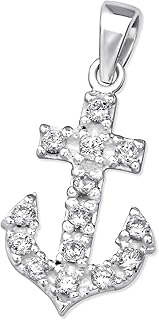 Damen-Anhänger Anker Maritim mit Zirkonia 15mm Sterling Silber 925
