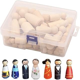 46Pcs unvollendete hölzerne Peg Puppen unvollendete dekorative Familienmenschen Figuren Formen Puppen für Kinder Malen Familien DIY Bastelkunstprojekte Natur Holzpuppen für Hochzeitsfeier Dekoration