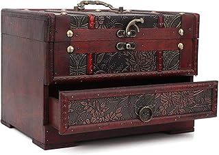 Hölzerne Schatzkisten, Schmuck Aufbewahrungsbox, Vintage Retro Holzschatzkiste Square Organizer Trinket Box, für Schmuck Souvenirs Kosmetik und Süßigkeiten(04)