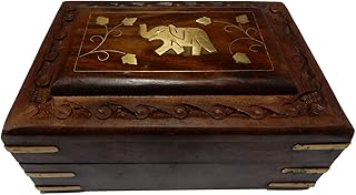 Handgemachte hölzerne Schmuckschatulle mit einem einzigen Elefanten Inlay Arbeit Organizer Box Aufbewahrungsbox Vintage Box Keepsake Box braun Farbe Größe 6 x 4 Zoll