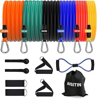 AISITIN Resistance Bands, 14-Teiliges Widerstandsbänder Set, mit 6pc Tubes Expander Rubber Fitnessbänder, Griffe, Türanker, Fußschlaufen bis zu 160 LBS für Krafttraining Muskelaufbau Pilates und Yoga